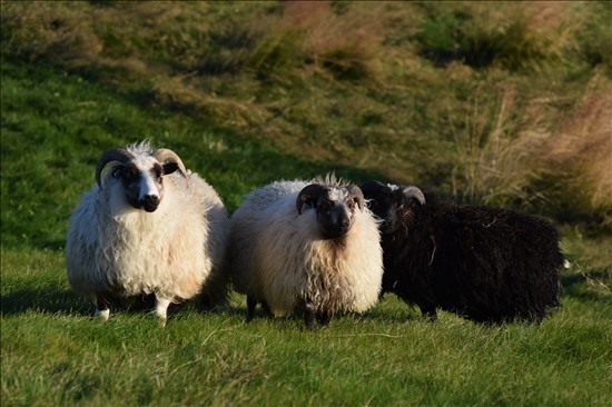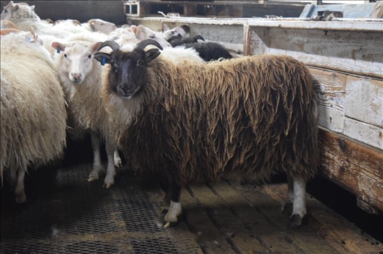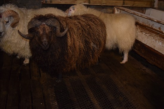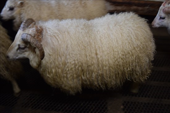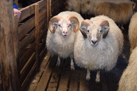 Hér er verið að skoða hvítu hyrndu hrútana.