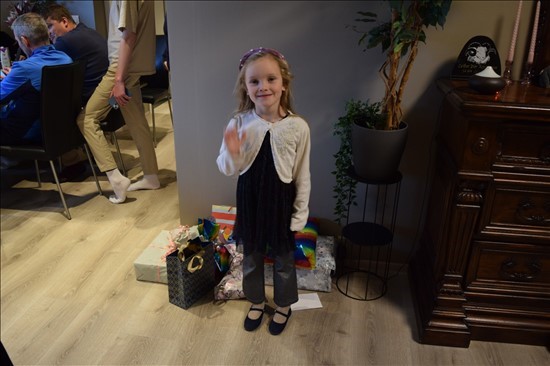 Hér er Ronja Rós heima hjá sér að fara opna gjafirnar.