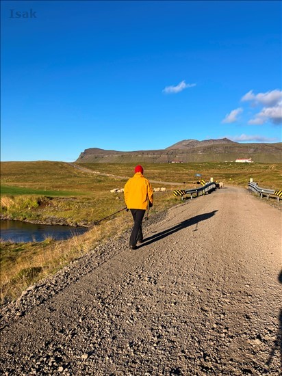 þegar við vorum að koma upp út sundi og þá var hún að fara í sund á Þelamörk en við ætlum að fara svo norður leiðina aftur til baka og þá ætluðum við