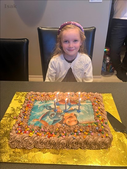 Hér er verið að fara syngja afmælissönginn og blása á 6 kertin svo ánægð 6 ára skvísa hér.