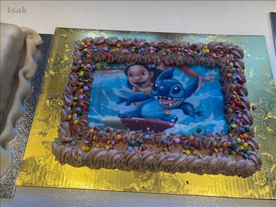 Ég var með þessa fallegu tertu frá Kalla bakarí í fjölskylduafmælinu en Gulla og Steinar