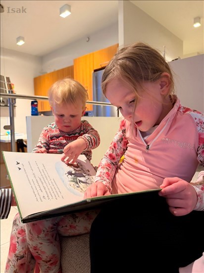 þau voru að fara til Tenerife yfir páskana. Hér er Ronja að lesa fyrir Marra geiturnar þrjár