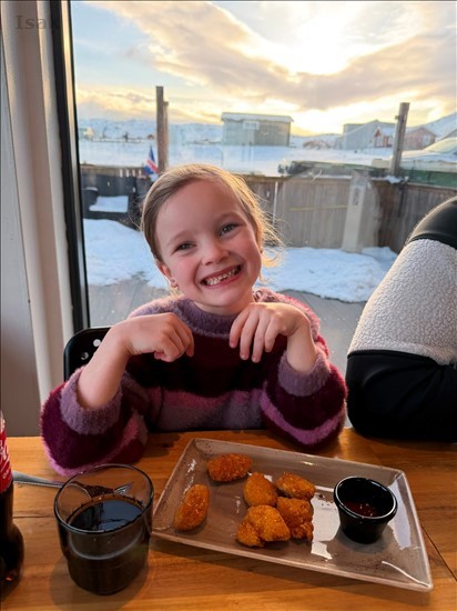 Ronja fékk sér kjúklinganagga og allir voru mjög sáttir og konan sem afgreiddi okkur og þjónaði bauðst til að taka mynd