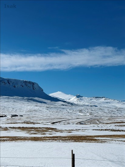 Við fórum svo í fjárhúsin og gáfum kindunum og Snæfellsjökullinn alltaf jafn fallegur.