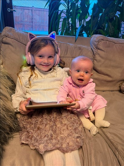 Ronja svo ánægð með Módísi Maríu frænku sinni sem karítas frænka og Danni eiga.