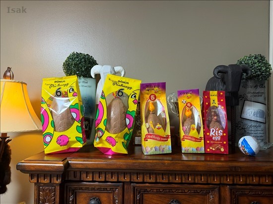 líka eitt egg og við felum þau svo um morguninn áður en þau vakna.