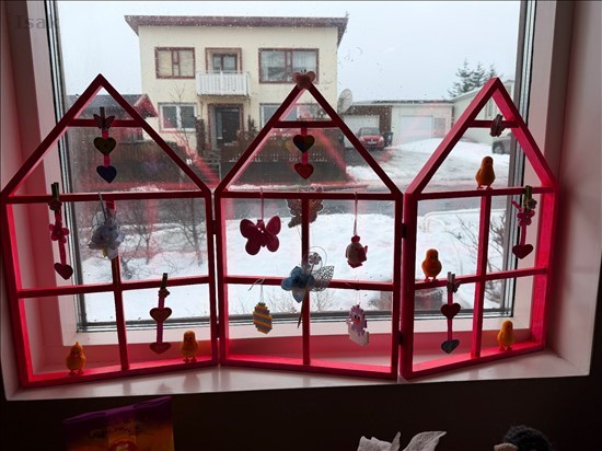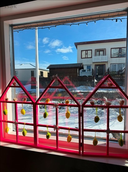 Hér eru páskaeggin hjá krökkunum sem við felum svo fyrir þau og Birgitta frænka þeirra á
