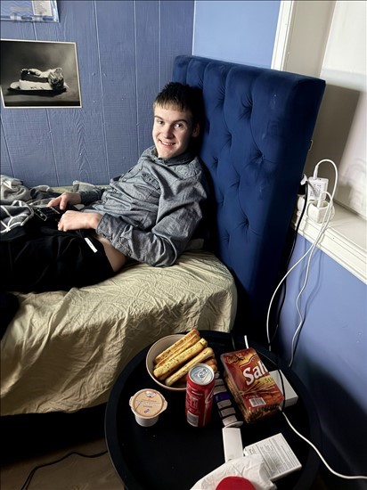 sér að ná sér . Aðgerðin tókst vel og honum líður mun betur núna.
