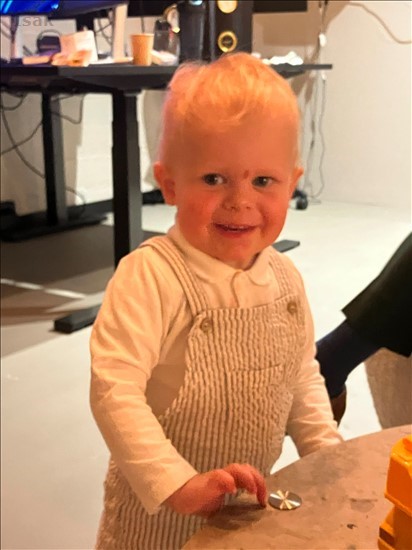 Emil mættur til okkar það var mikil gleði og mikið hlegið af nýju skegg mottunni